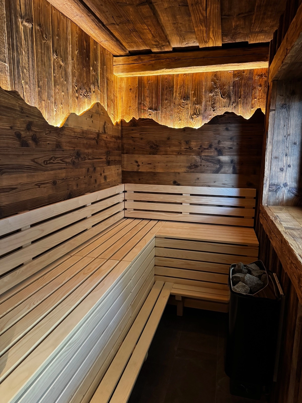La SPA di La Dane è un rifugio intimo e raffinato, realizzato in legno antico e pensato per rigenerare corpo e mente. Gli ospiti possono rilassarsi in un idromassaggio panoramico per due persone, nella sauna finlandese con vista sul bosco, nel bagno turco o nella doccia emozionale con cromoterapia. Completano l’esperienza una selezione di vini, un’area relax con tisane alle erbe, frutta fresca e dolci fatti in casa, il tutto accompagnato da musica rilassante e profumi naturali di montagna.