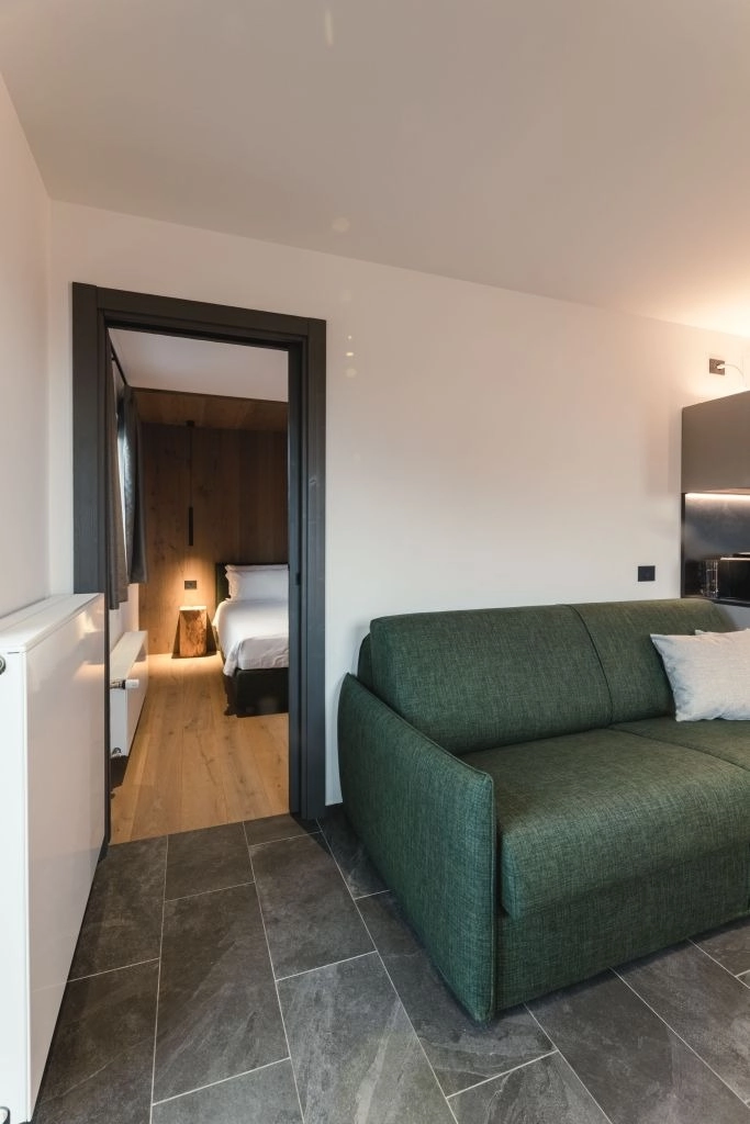 Dagli appartamenti si accede direttamente alla SPA interna, garantendo agli ospiti privacy e benessere in ogni momento del soggiorno. Inoltre, è possibile prenotare un cestino per una colazione fatta in casa, da gustare comodamente nel proprio appartamento.